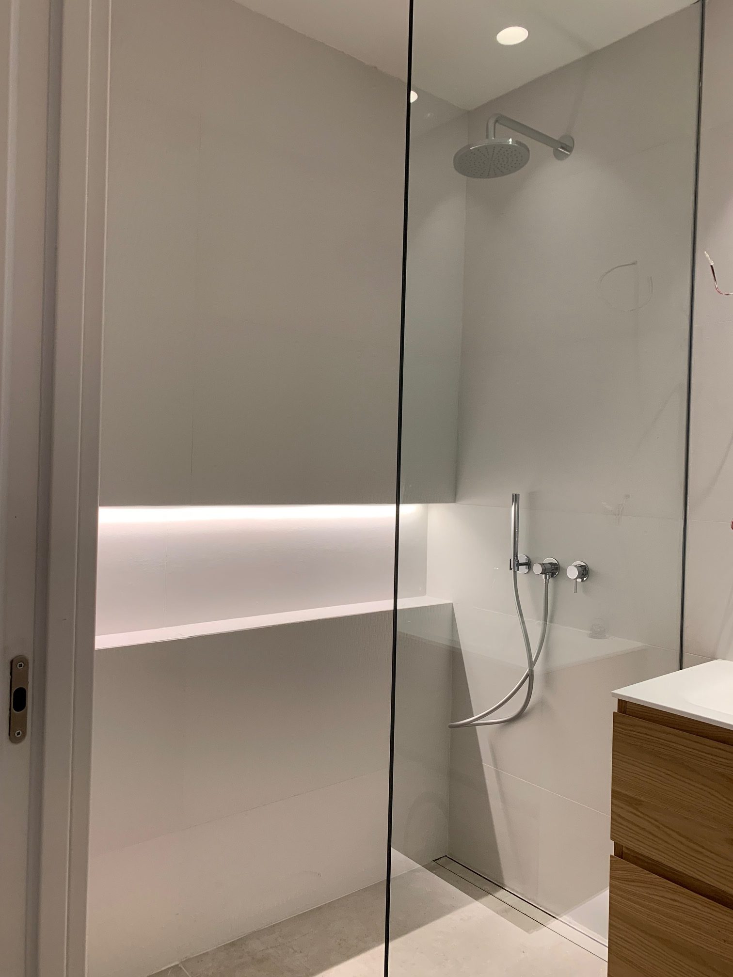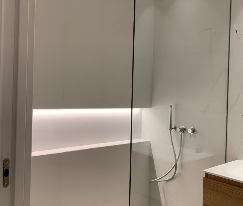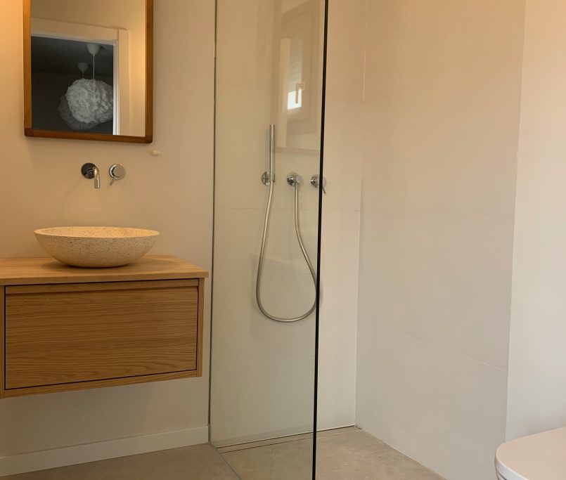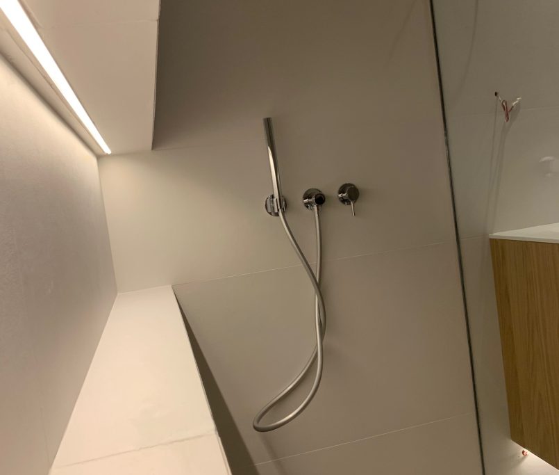 El proyecto se completa con griferías empotradas de Icónico, que aportan un diseño minimalista y funcional en los baños, cuidando cada detalle para conseguir un resultado equilibrado entre estética y confort.
