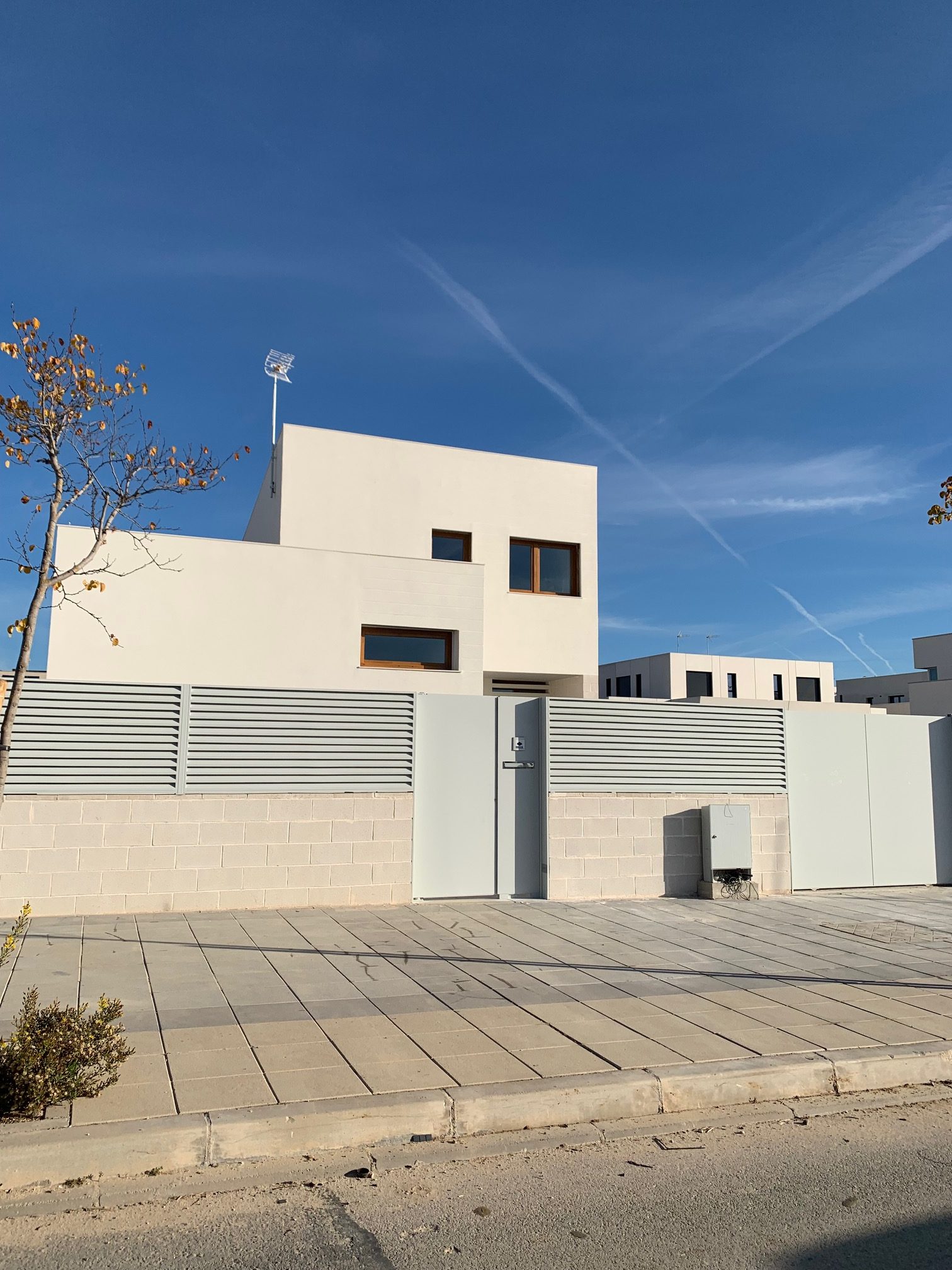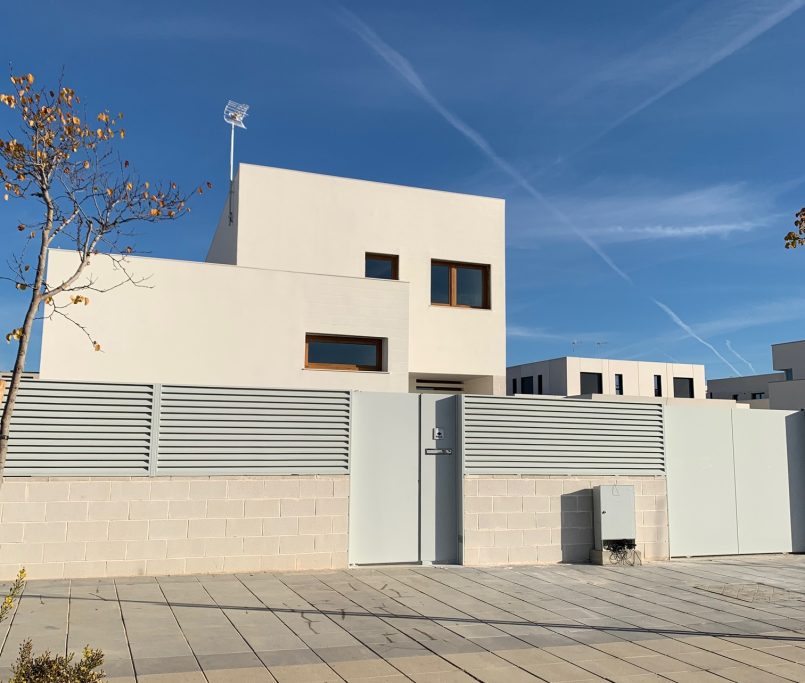 La fachada incorpora revestimiento SATE en toda la vivienda, un sistema de aislamiento térmico exterior que mejora notablemente la eficiencia energética y el confort interior durante todo el año.